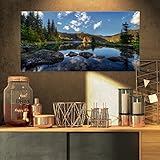 Designart Mountain Lake Surrounded by Trees Artwork Canvas Print, 32 x 16 in, Green