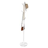 Honey-Can-Do Modern Standing Coat Rack with Wood Accent, White GAR-09526 White