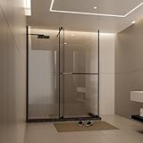 KMBOHE Semi-Frameless Bypasss Shower Door with Reversible Installation 30-60″ W x 72″ H Bathroom Glass Shower Sliding Doors, 1/4 inch Glass Panel with Stainless Steel Handle, Supporting Bar, Black