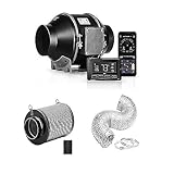 iPower GLFANXHKSETINLECWIFI4D8C 4 Inch Inline Duct Ventilation Smart Fan, Carbon Filter, 8 Feet Ducting with Temperature Humidity App Control via WiFi, Voice Control with Alexa for Grow Tent, Black