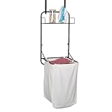 Collapsible Wall-Mounted Clothes Hamper with Canvas Bag and Metal Shelf, Black