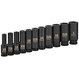 Powerbuilt 647049 1/2″ Drive 6 Pt. SAE Deep Impact Socket Set, 11 Pieces , Black