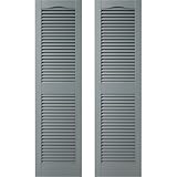 14.5 in. W x 55 in. H Builders Edge, TailorMade Cathedral Top Center Mullion, Open Louver Shutters, Includes Matching Installation Spikes (Per Pair), 419 – Storm Cloud
