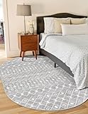 Unique Loom Tribal Trellis Collection Area Rug – Alaoui (4′ x 6′ Oval Gray/Ivory)