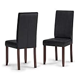 SIMPLIHOME Acadian Dining Chairs – Upholstered Solid Hardwood and Vegan Leather Parsons Dining Chair Set in Distressed Black, Transitional Dining Room Seating with Padded Back and Seat (Set of 2)