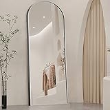 NeuType Arched Floor Full Length Mirror Standing Full Body Dressing Mirrors with Stand Hanging Wall Mounted Large Metal Frame Leaning Bedroom Living Room Decor 65 x 22 in (Silver)