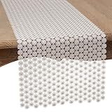 SARO LIFESTYLE Thea Dora Collection Openwork Floral Design Antique Style Lace Table Runner, 16″ x 72″, Grey
