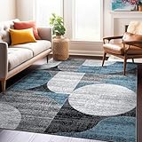 Rugshop Modern Geometric Design High Traffic Living Room,Bedroom,Kitchen, Home Office Area Rug 5′ x 7′ Blue