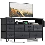 YITAHOME TV Stand with Charging Station – 9 Drawer Dresser for 55” TV, Black Stand with Side Pockets, Fabric for Living Room, Entryway