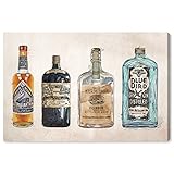 Wynwood Studio Drinks and Spirits Wall Art Canvas Prints ‘Vintage Liquors’ Home DΓ©cor, 30 in x 20 in, Blue, Orange