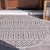 Unique Loom Outdoor Trellis Collection Area Rug – Tribal Trellis (13′ Round, Gray/ Black)