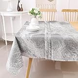 Majestic Giftware Polyester Tablecloths for Rectangle Tables | (60/90) – TC1353 Jacquard Forest Grey Print Hem Stitch Dining Table Cover | Decorative Washable Tablecloth for Kitchen, Dining