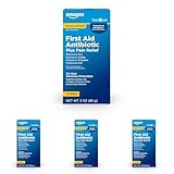 Amazon Basic Care Maximum Strength First Aid Triple Antibiotic Ointment, Pain Relief for Minor Cuts, Scrapes and Burns, 3 Ounce (Pack of 4)
