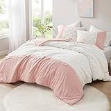 Intelligent Design King Comforter Set Clipped Jacquard Pompom Boho Comforters King Size Bedding Set, All Season Microfiber King Size Comforters, Matching Sham, Shay, King/Cal King, Pink 3 Piece