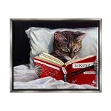 Stupell Industries Cat Reading a Book in Bed Funny Painting, Design by Lucia Heffernan