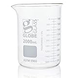 Globe Scientific Beaker, Globe Glass, 2000mL, Low Form Griffin Style, Dual Graduations, 3.3 Borosilicate Glass, ASTM E960, 4/Box (8012000)