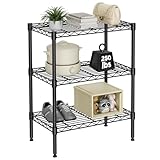 Sweetcrispy 3 Tier Metal Storage Shelving Shelf, Adjustable Metal Wire Racks Heavy Duty Standing Shelf Organizer for Kitchen and Closet, 13.8″ D x 23.6″ W x 30″ H, Black