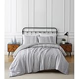 TRULY SOFT Kiel Stripe Flannel Grey Cotton 3-Piece Full/Queen Comforter Set, Stripes Themed, for Men and Women, Oeko-TEX Certified Confidence