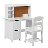EGFheal White Study Desk and Chair Set with Bookshelf, Bulletin Board, and Cabinets – Ideal for Boys and Girls Ages 3-8