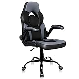 Office Gaming Chair with Flip-up Armrests, Ergonomic Computer Game Chair Bonded Leather Swivel Desk Chair Adjustable Height Comfortable Upholstered Armrests(Gray)