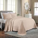 Superior 2 Piece Celtic Circles Cotton Bedspread Set, Decorative Bed Spread, Home Bed Decor, 1 Pillow Sham, Medium Weight Blanket, Matelasse Coverlet Bedding, Wedding Ring Design, King, Bisque
