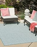 Unique Loom Outdoor Trellis Collection Area Rug – Deco Trellis (7′ 1″ x 10′ Rectangle, Aqua/ Ivory)