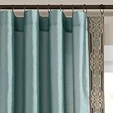 Lush Decor Luxury Traditional Regency Faux Silk Border Trim Window Curtain Panel (Single), 84″ L x 52″ W, Blue & Dusty Blue