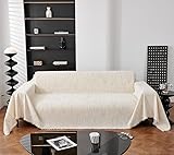 AMWAN Beige Sofa Cover Classic Fine Stripe Chenille Couch Cover for Sectional,L-Shape,Loveseat,Durable Sofa Slipcover Dogs,Cats,Kids,Machine Washable Furniture Protector Cover, 71″x118″