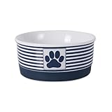 Bone Dry Paw & Patch Ceramic Pet Collection, Small Bowl, 4.25×2″, Nautical Blue