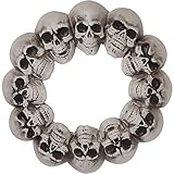 Haunted Hill Farm 15.7-in. Halloween Dungeon Skull Hanging Wreath for Indoor or Covered Outdoor Scary Halloween House Decorations, Spooky Halloween Wreaths for Front Door or Wall