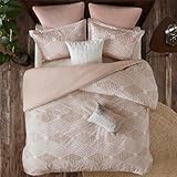 INK+IVY King Duvet Cover Set, Geometric Cotton Queen Bed Duvet Cover, Modern Farmhouse with Clipped Jacquard, All Season Bedding Cover with Matching Shams, Ellipse, King/Cal King, Blush 3 Piece